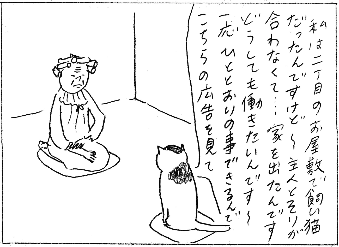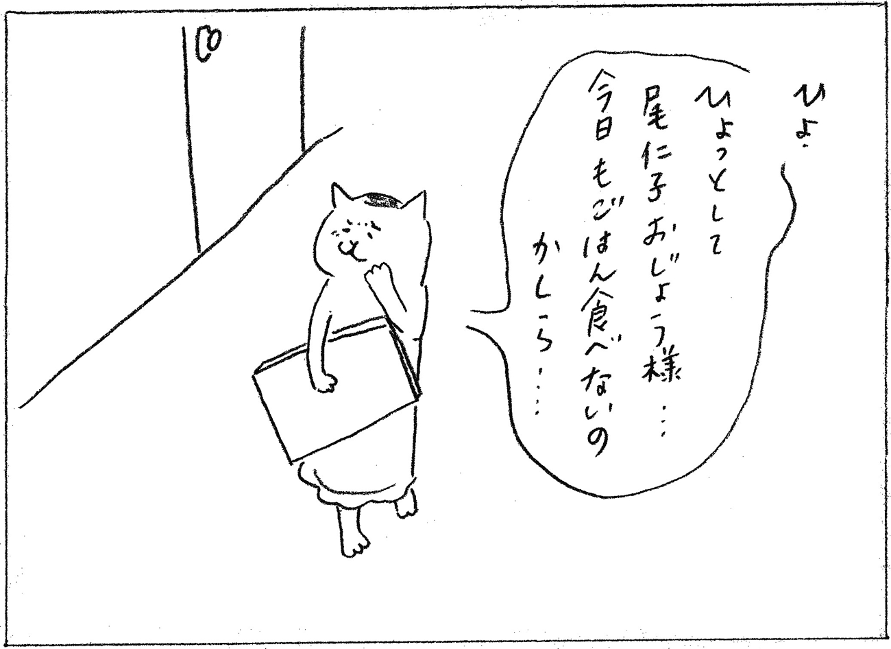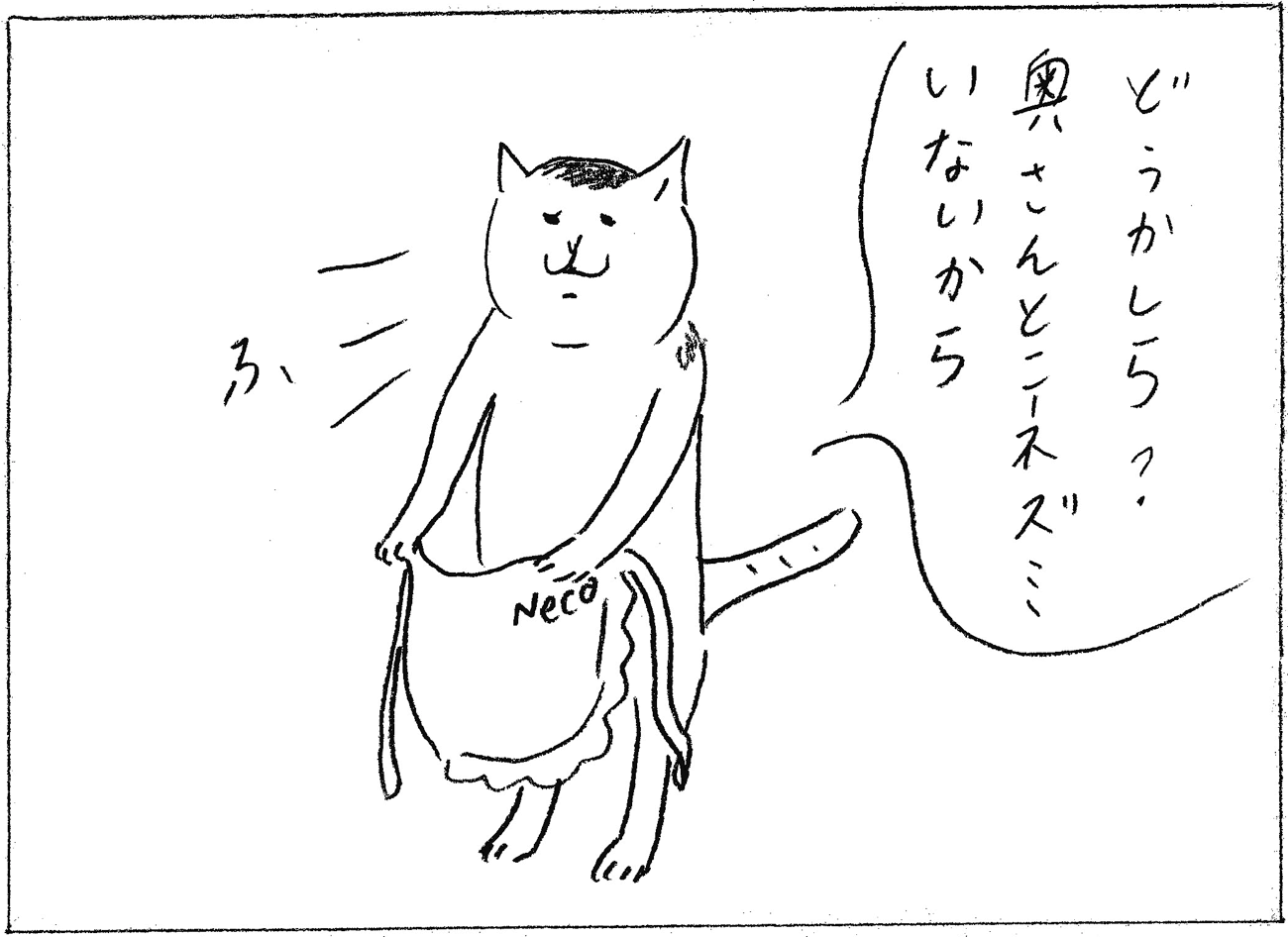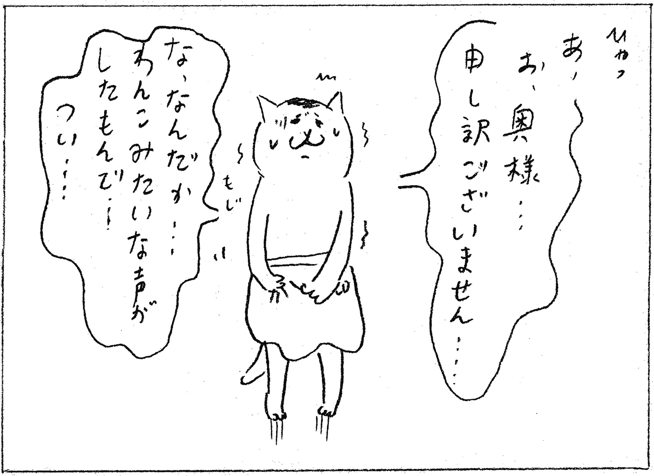4歳。親猫とはぐれ、迷子だった猫の頃に、ぼっちゃんに拾われる。ぼっちゃんの両親の離婚により、最愛のぼっちゃんと離ればなれに。自立するため村田家政婦紹介所に勤務。現在の奉公先は犬神家。ぼっちゃんからもらったピンクのエプロンが一番大切なもの。