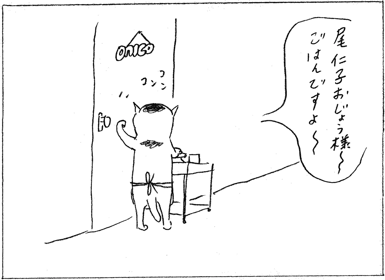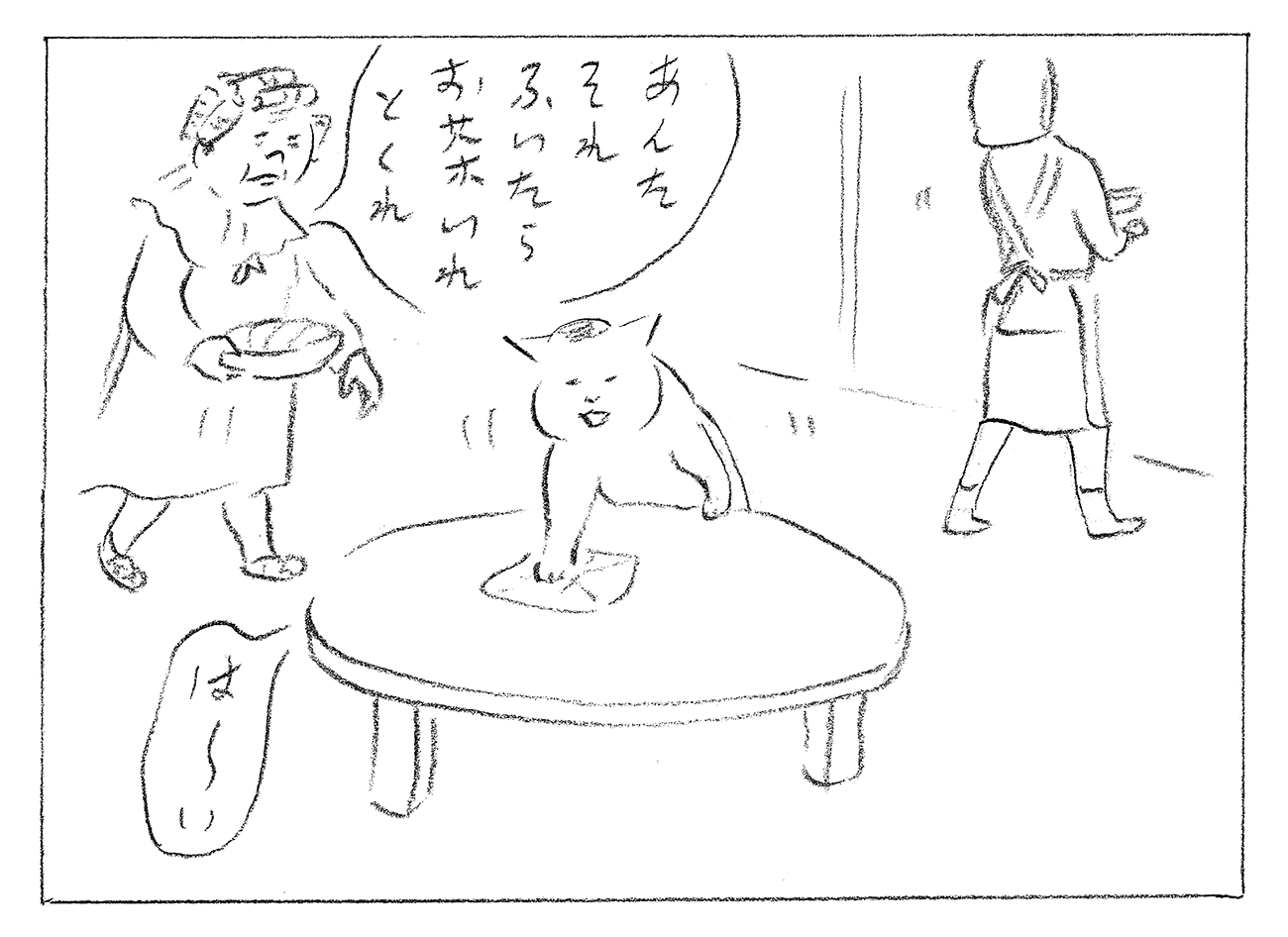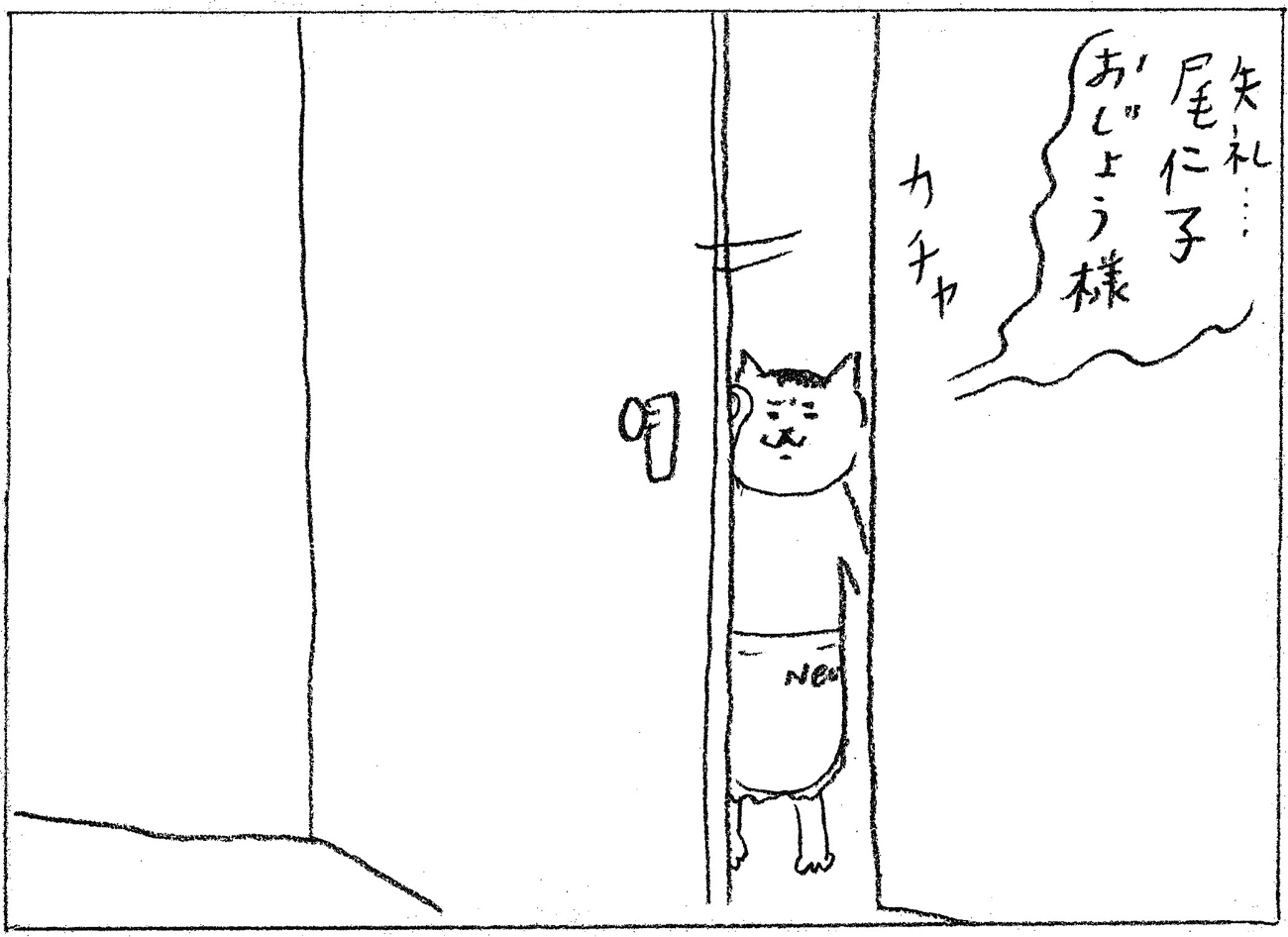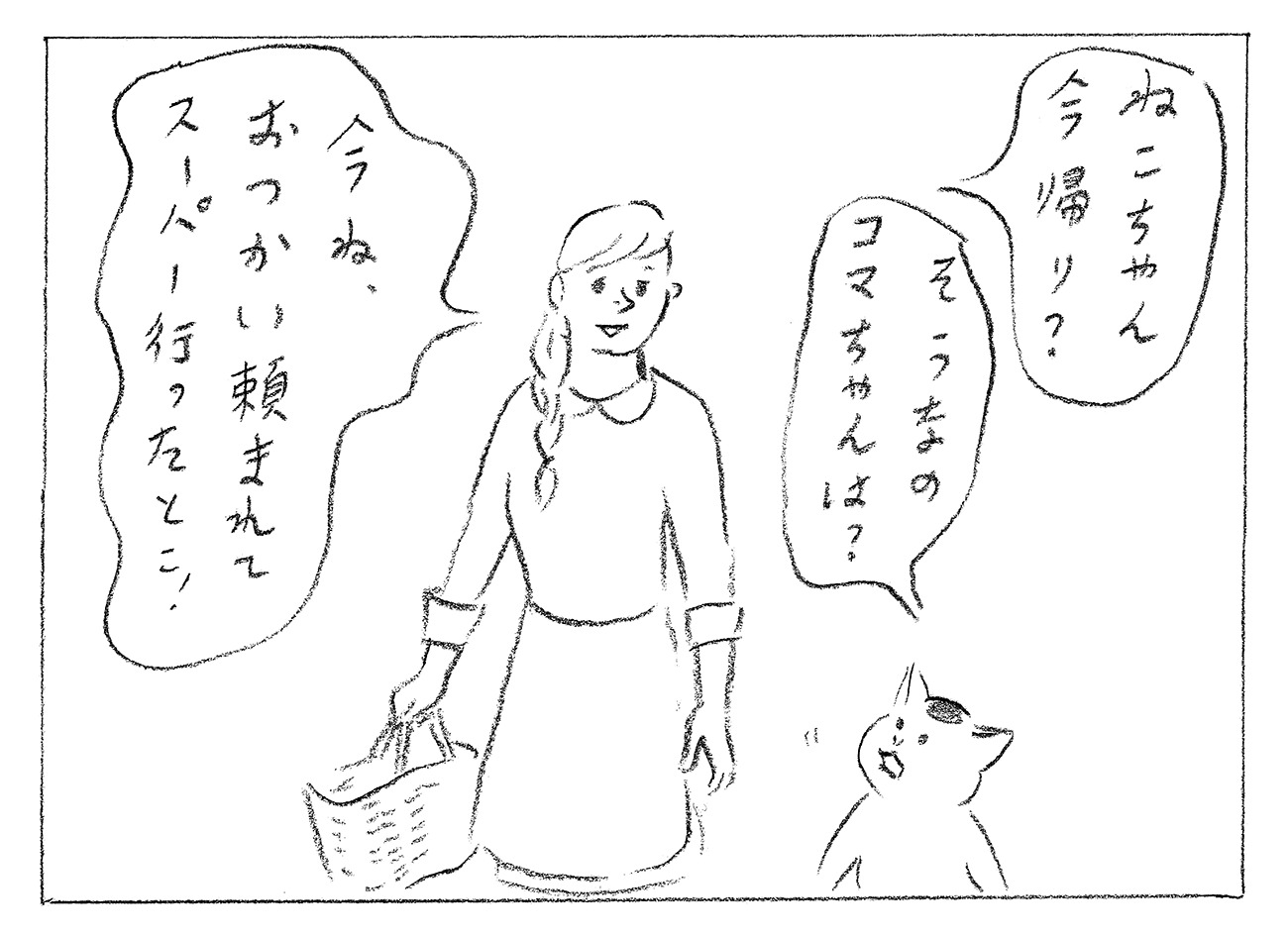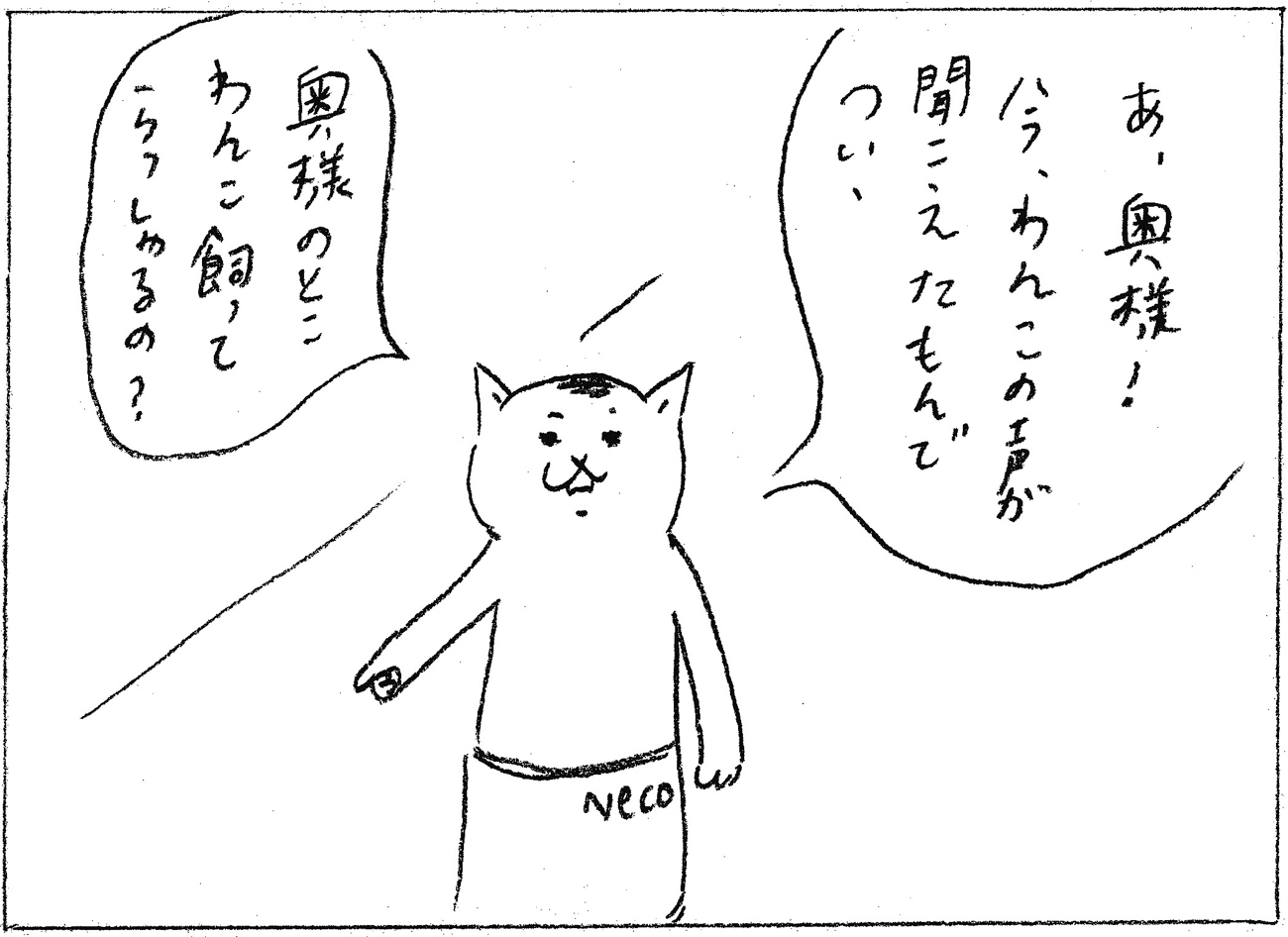 4歳。親猫とはぐれ、迷子だった猫の頃に、ぼっちゃんに拾われる。ぼっちゃんの両親の離婚により、最愛のぼっちゃんと離ればなれに。自立するため村田家政婦紹介所に勤務。現在の奉公先は犬神家。ぼっちゃんからもらったピンクのエプロンが一番大切なもの。