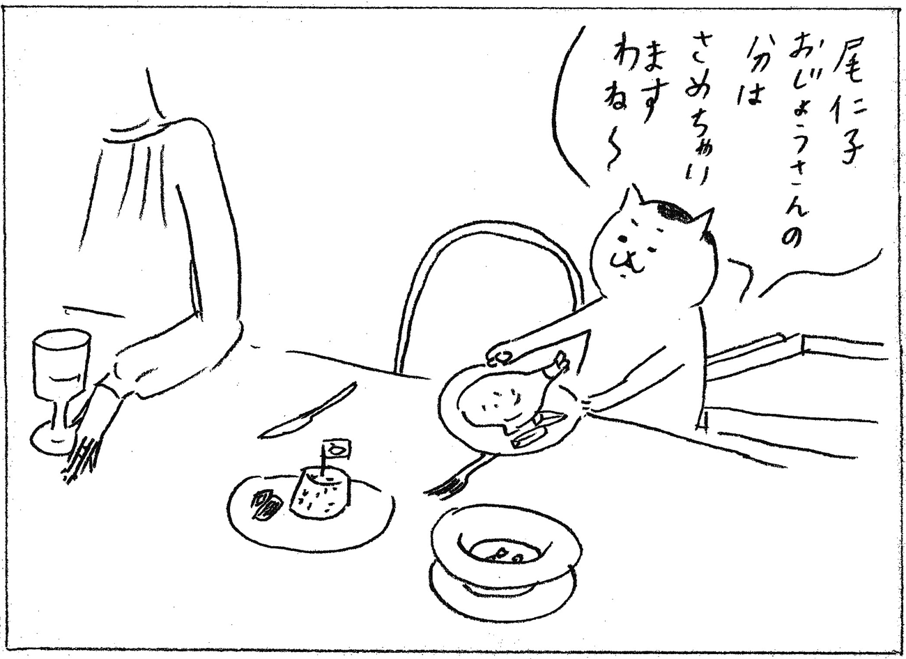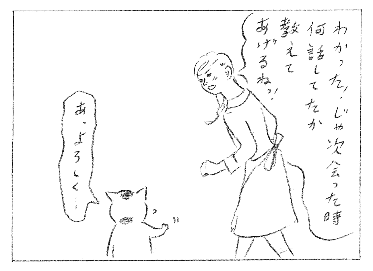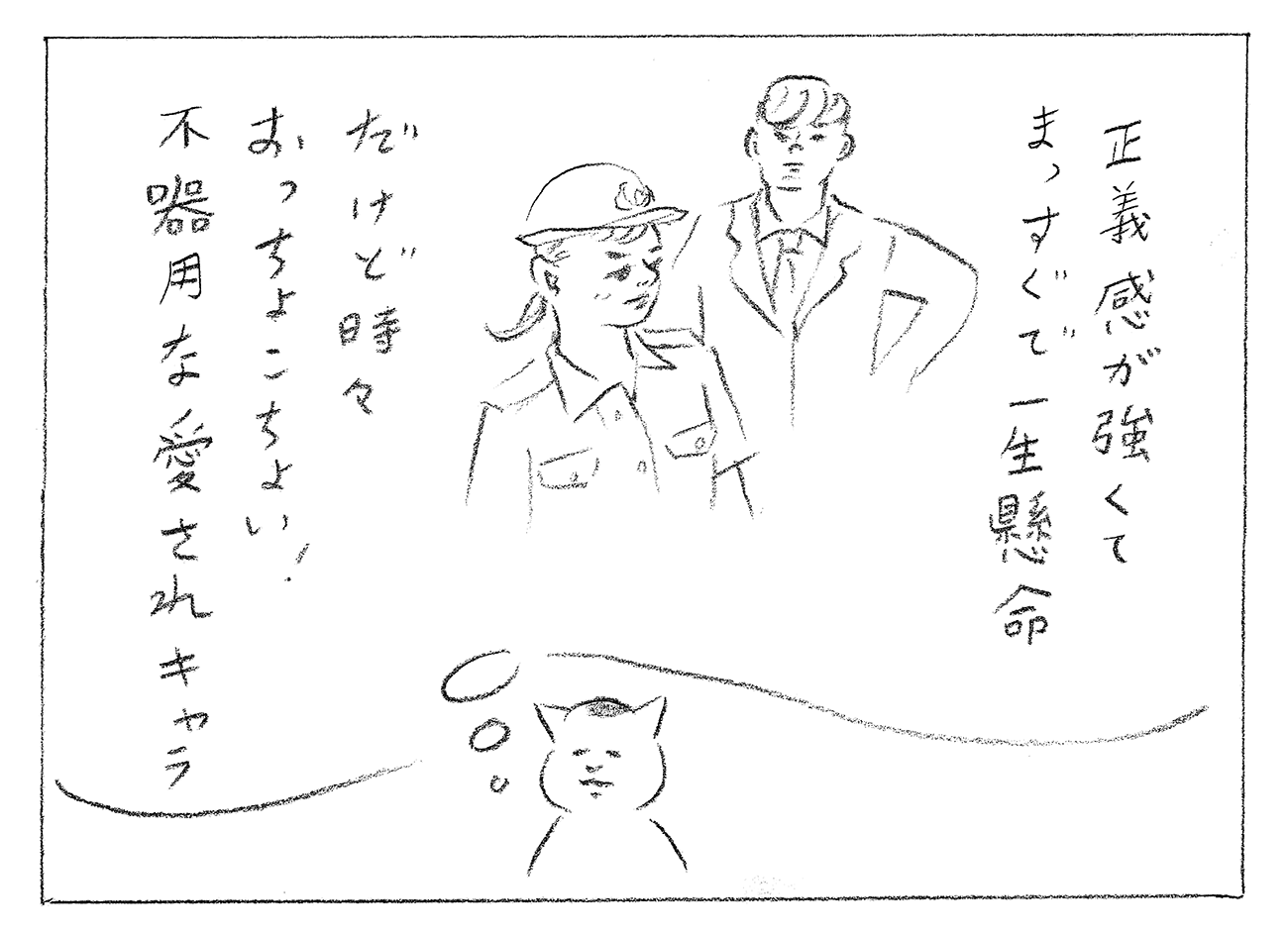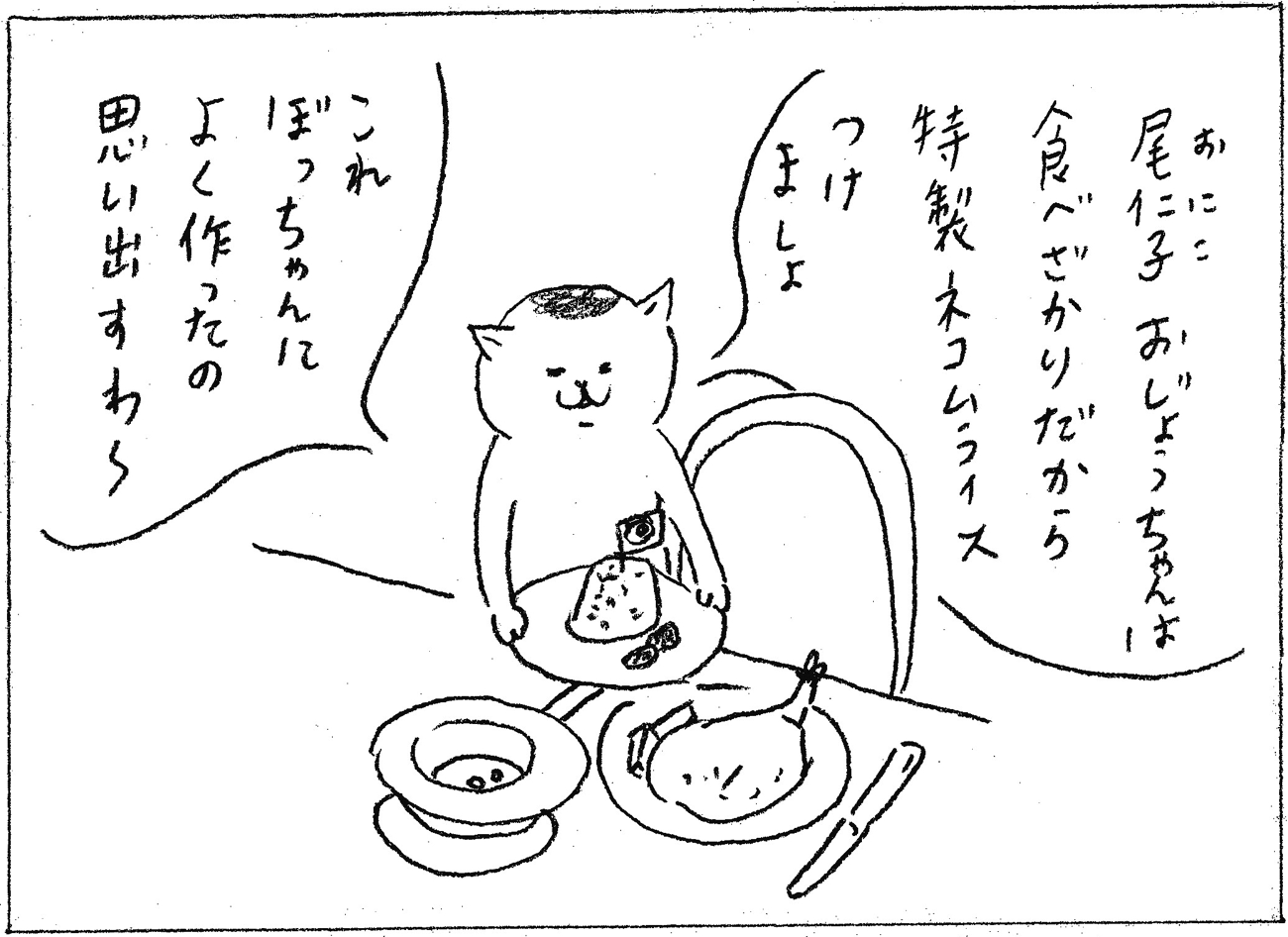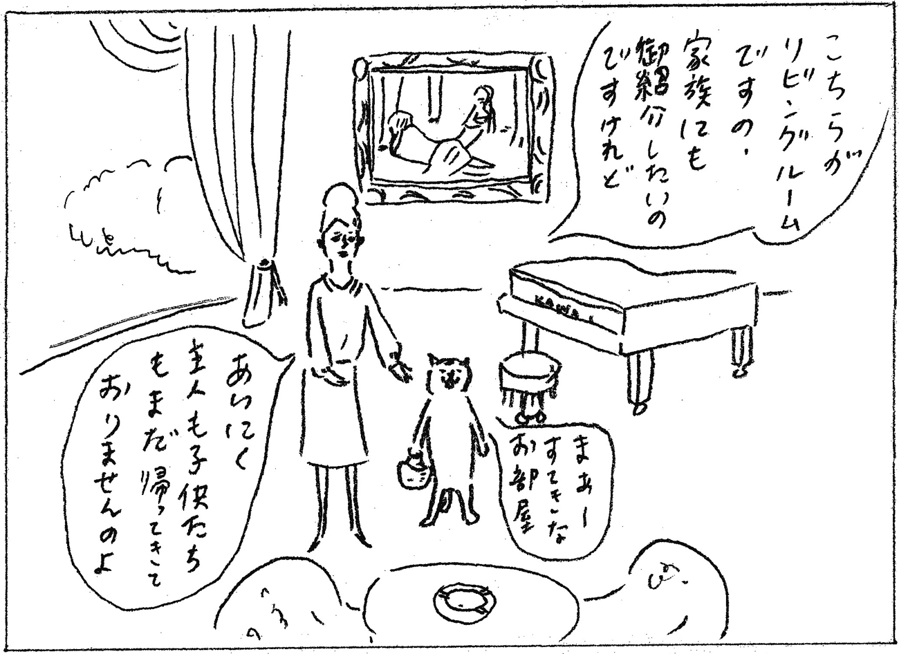 4歳。親猫とはぐれ、迷子だった猫の頃に、ぼっちゃんに拾われる。ぼっちゃんの両親の離婚により、最愛のぼっちゃんと離ればなれに。自立するため村田家政婦紹介所に勤務。現在の奉公先は犬神家。ぼっちゃんからもらったピンクのエプロンが一番大切なもの。