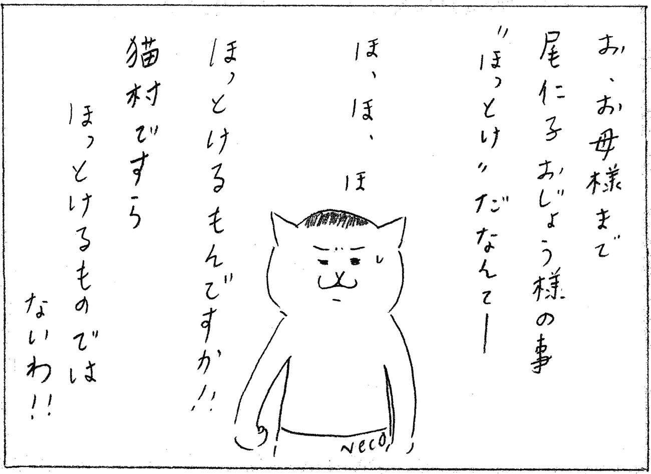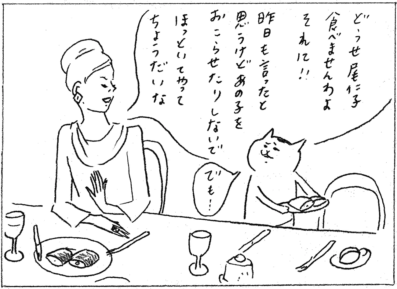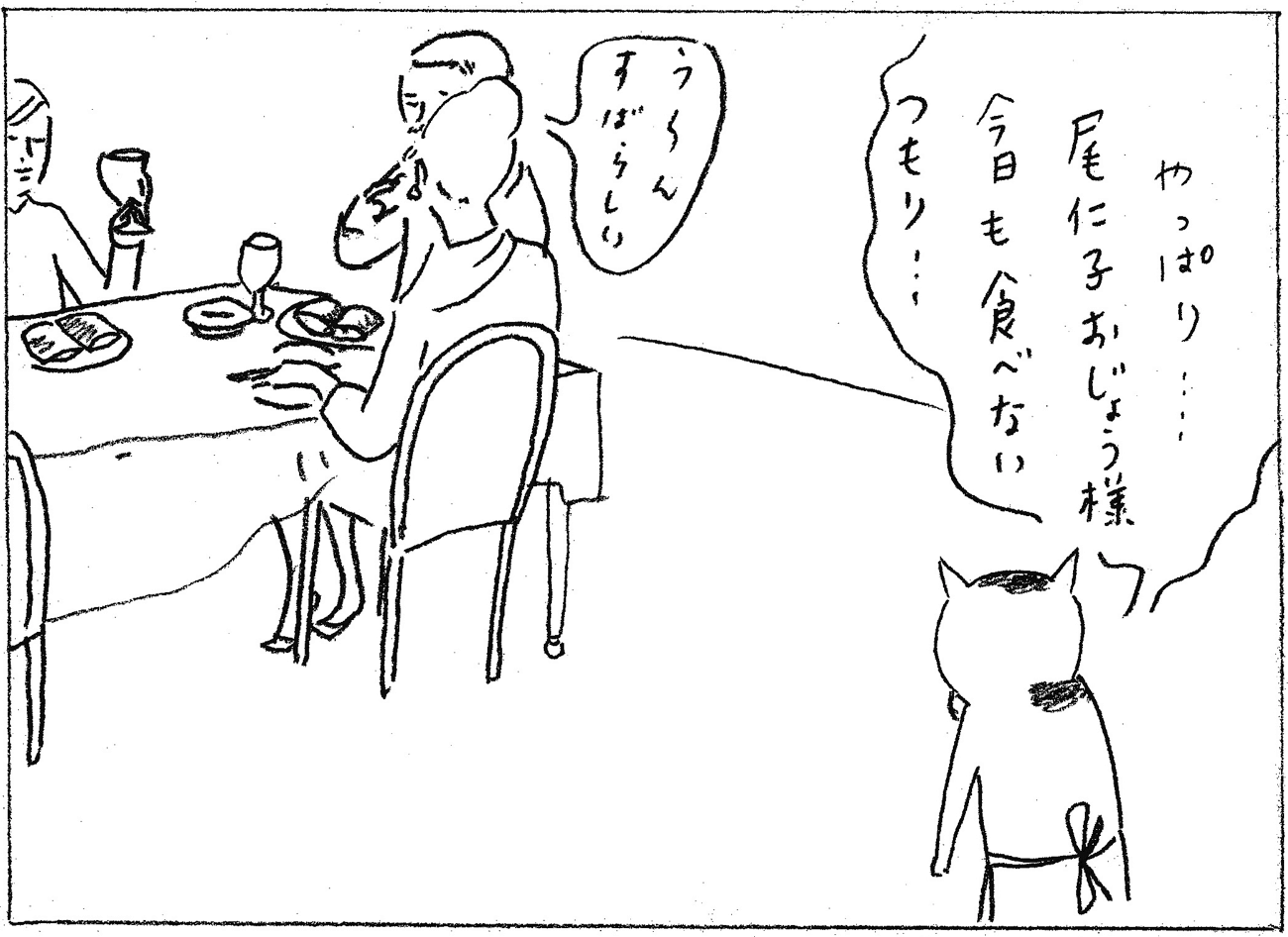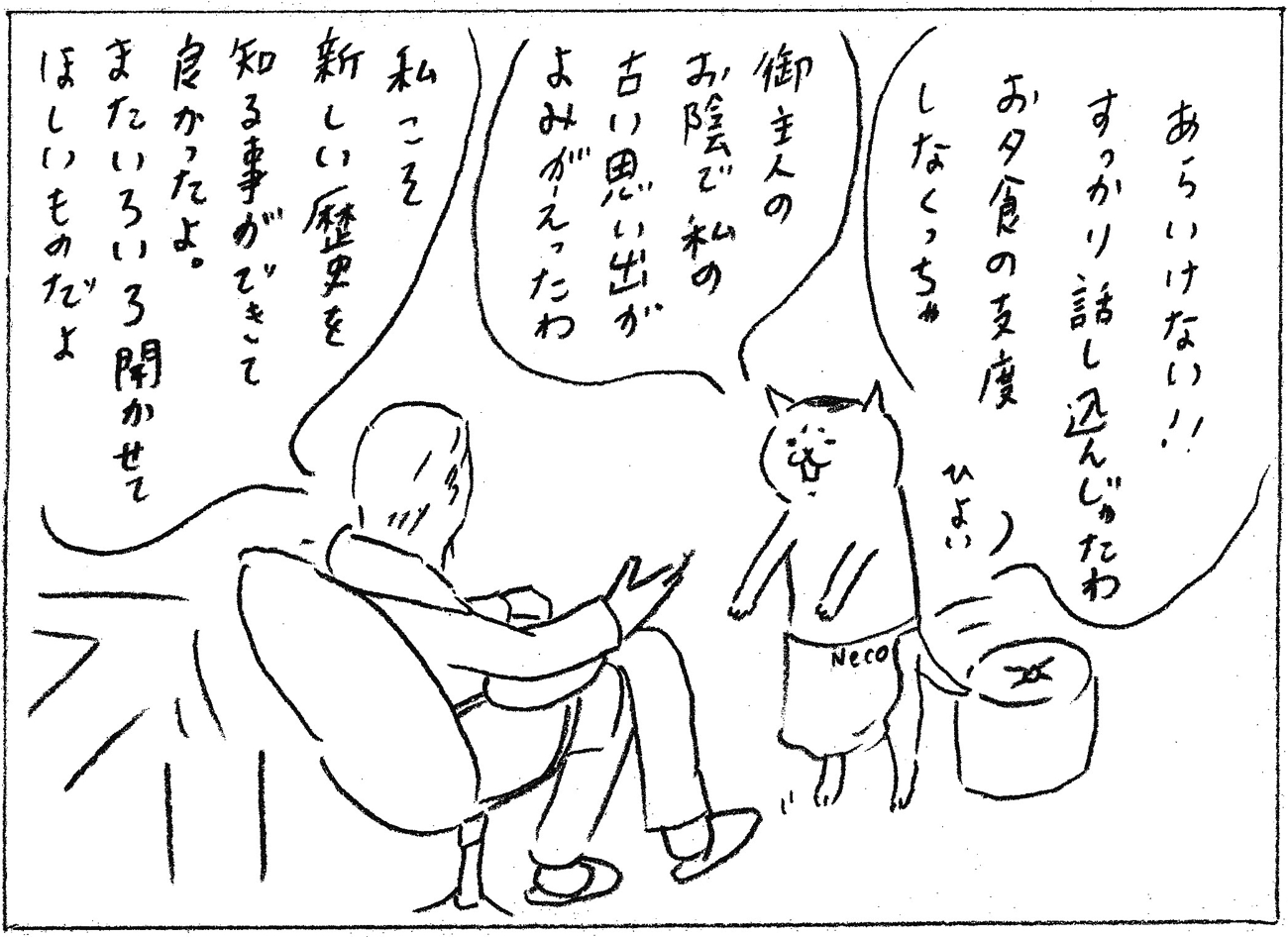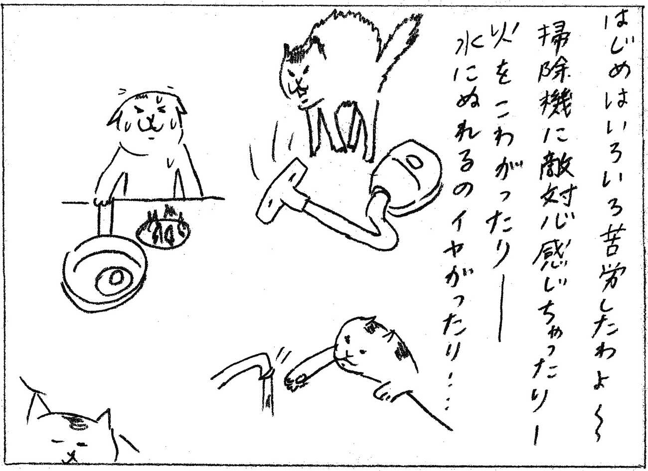 4歳。親猫とはぐれ、迷子だった猫の頃に、ぼっちゃんに拾われる。ぼっちゃんの両親の離婚により、最愛のぼっちゃんと離ればなれに。自立するため村田家政婦紹介所に勤務。現在の奉公先は犬神家。ぼっちゃんからもらったピンクのエプロンが一番大切なもの。