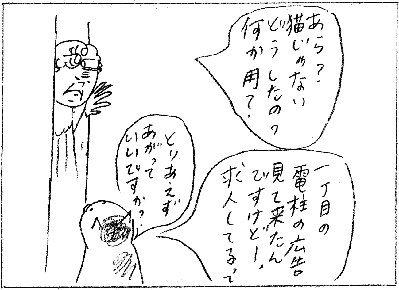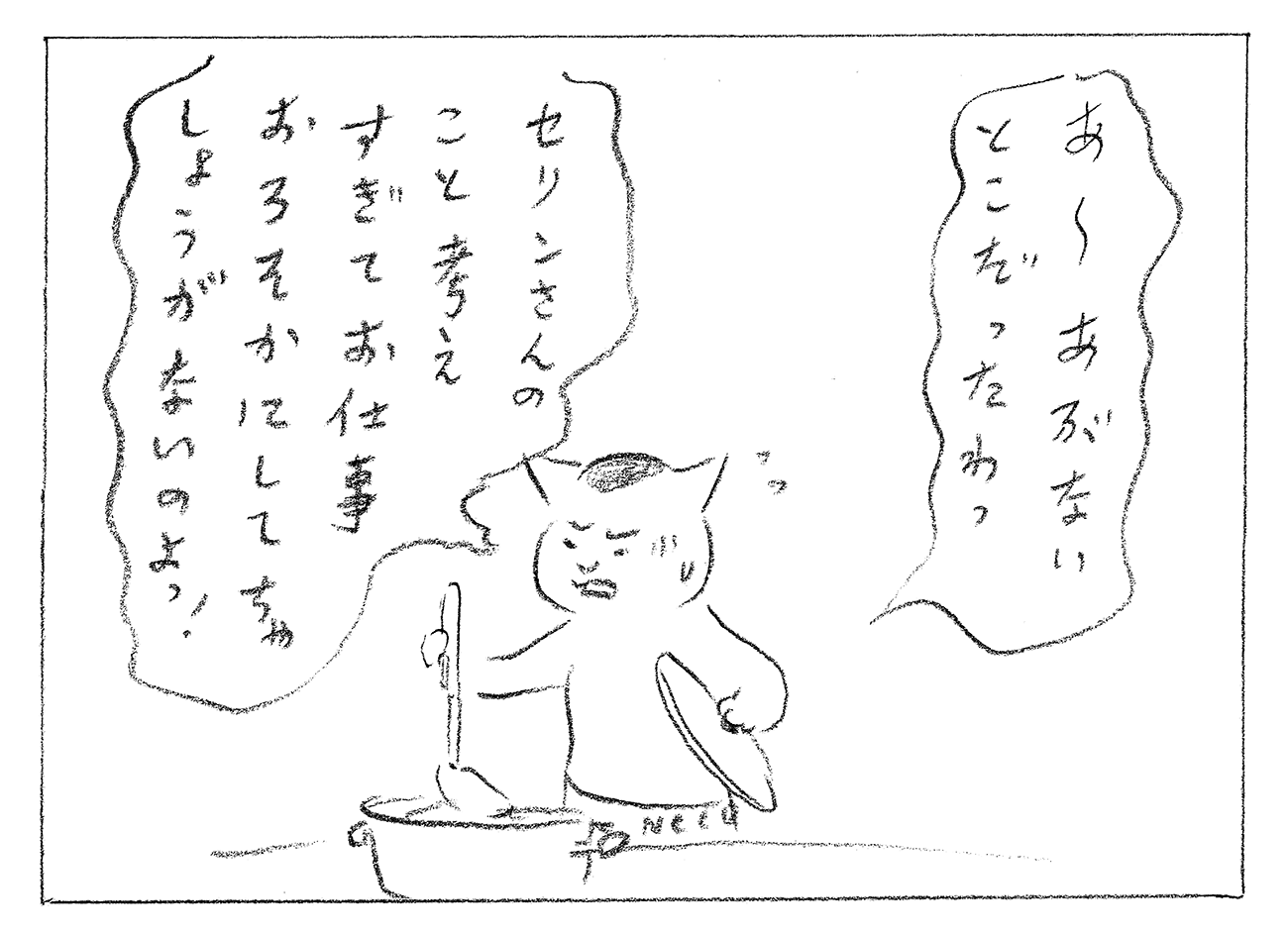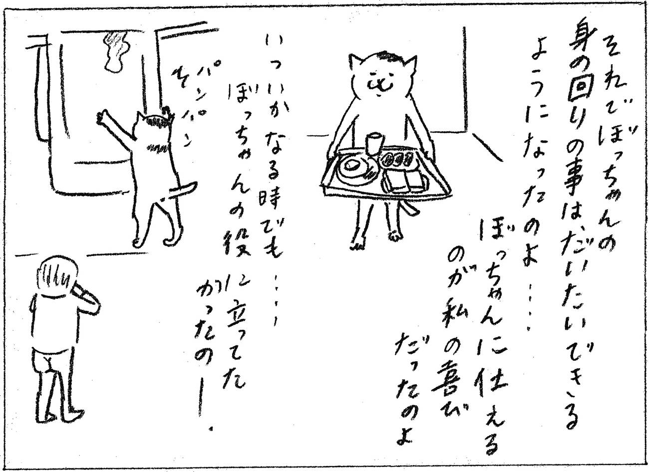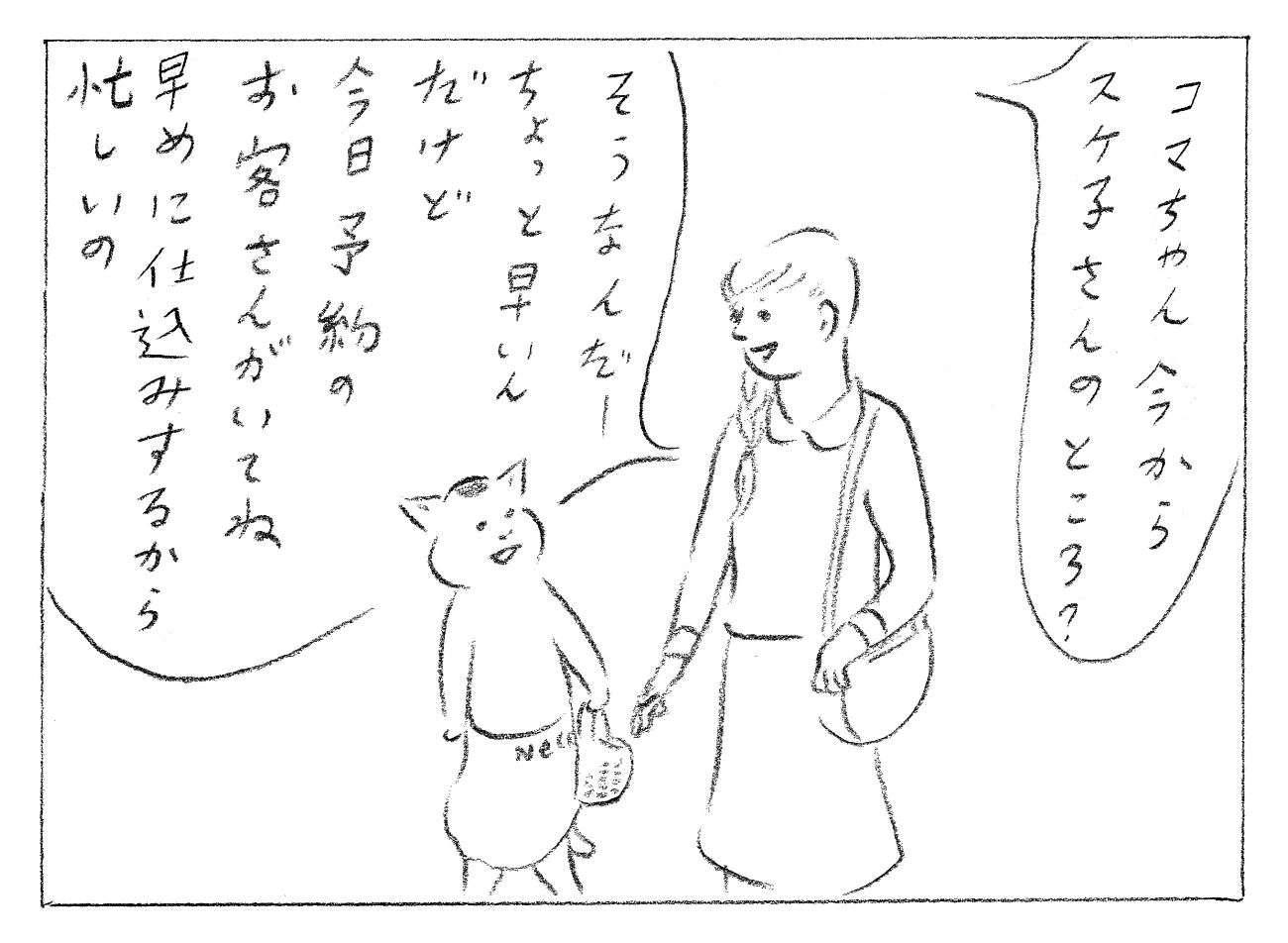 4歳。親猫とはぐれ、迷子だった猫の頃に、ぼっちゃんに拾われる。ぼっちゃんの両親の離婚により、最愛のぼっちゃんと離ればなれに。自立するため村田家政婦紹介所に勤務。現在の奉公先は犬神家。ぼっちゃんからもらったピンクのエプロンが一番大切なもの。