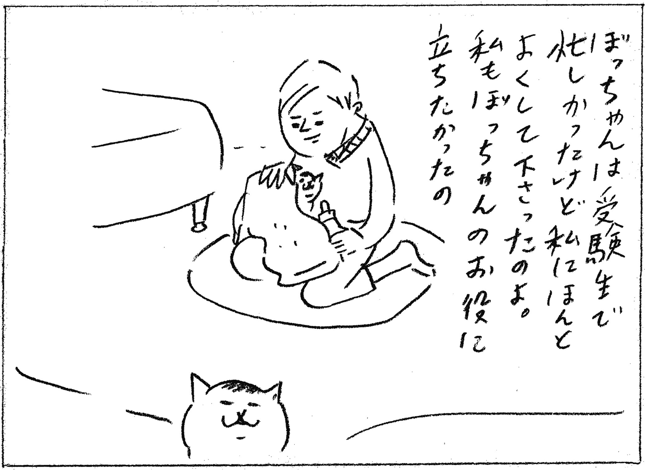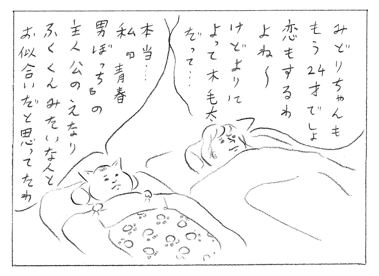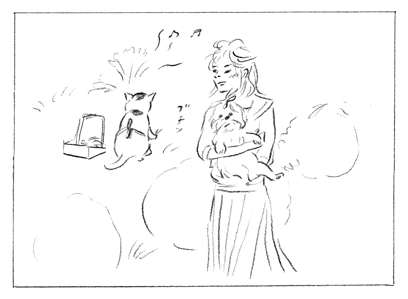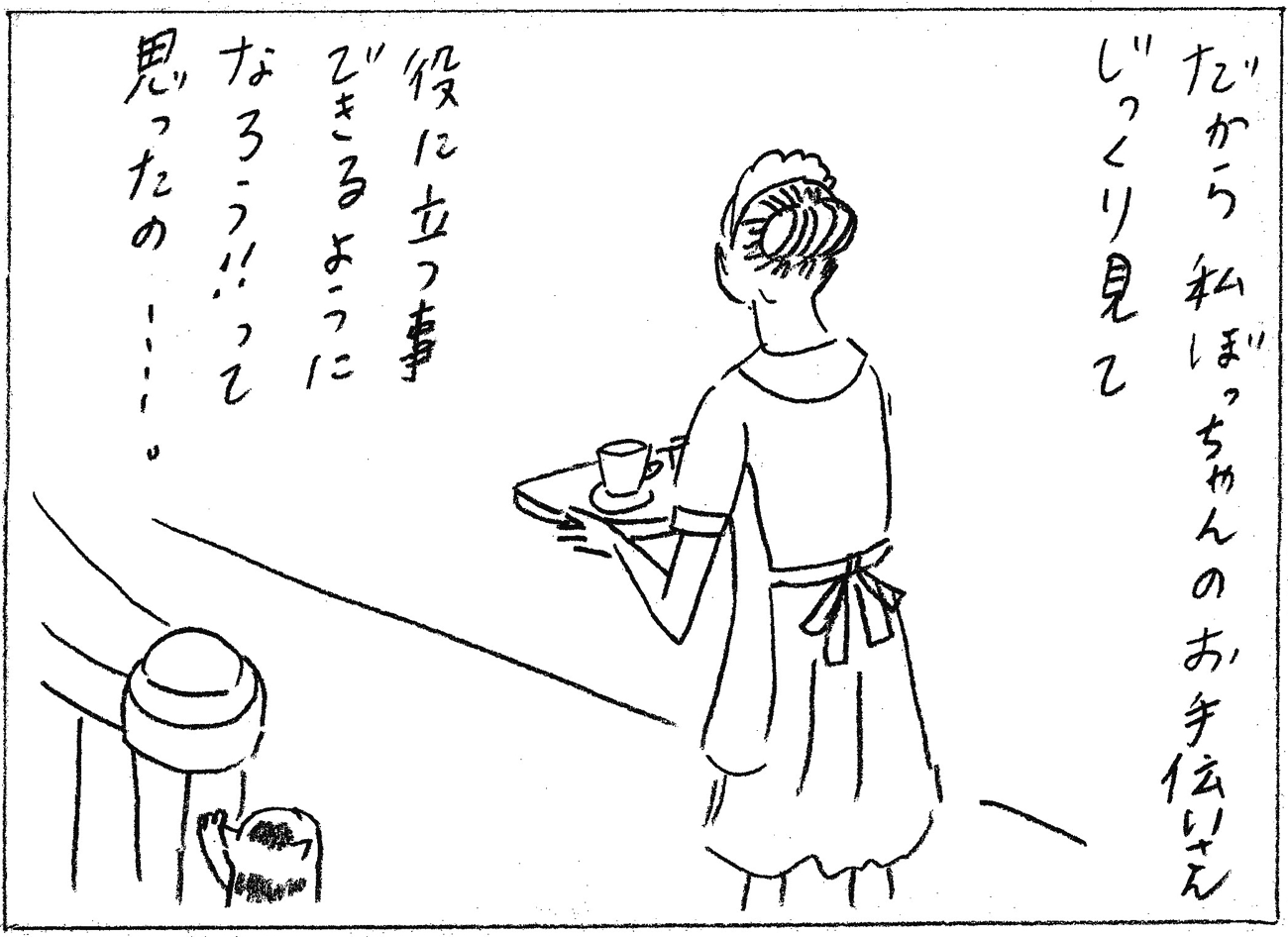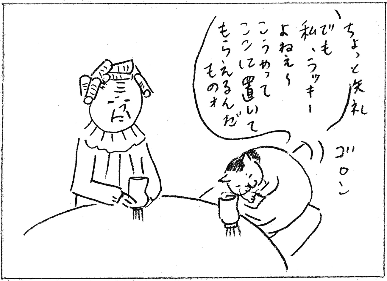 4歳。親猫とはぐれ、迷子だった猫の頃に、ぼっちゃんに拾われる。ぼっちゃんの両親の離婚により、最愛のぼっちゃんと離ればなれに。自立するため村田家政婦紹介所に勤務。現在の奉公先は犬神家。ぼっちゃんからもらったピンクのエプロンが一番大切なもの。