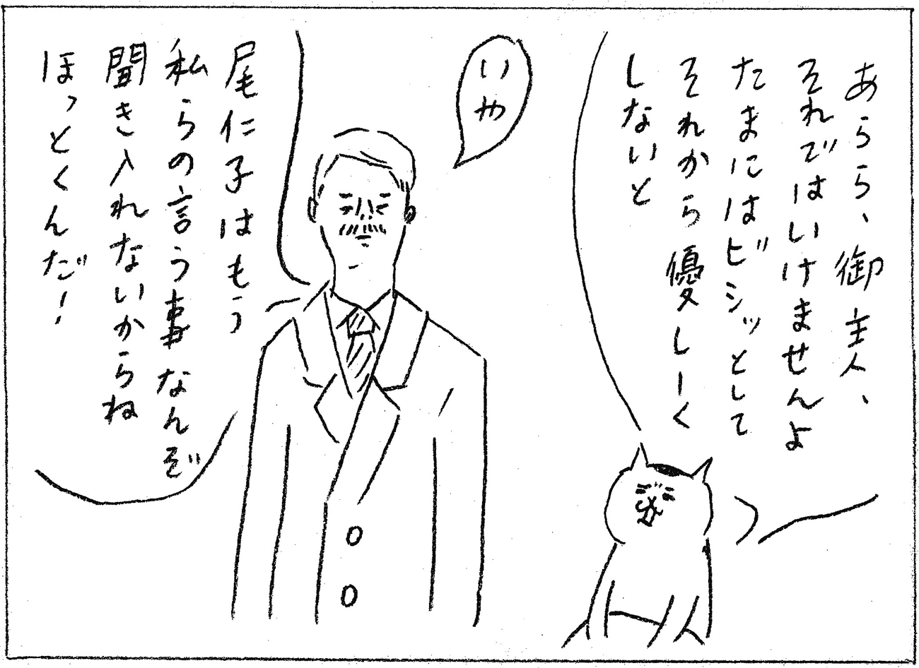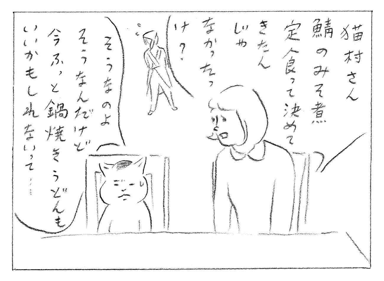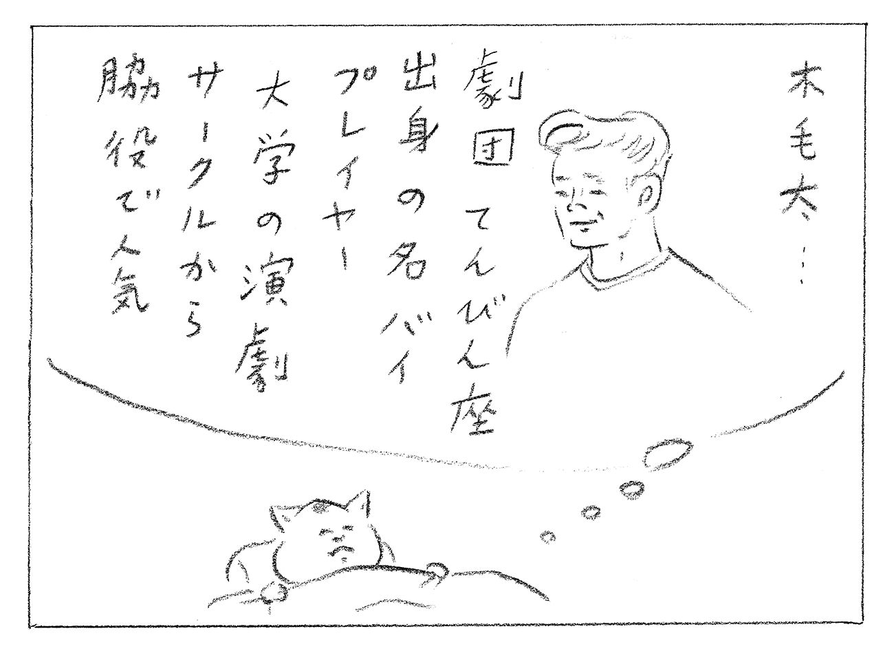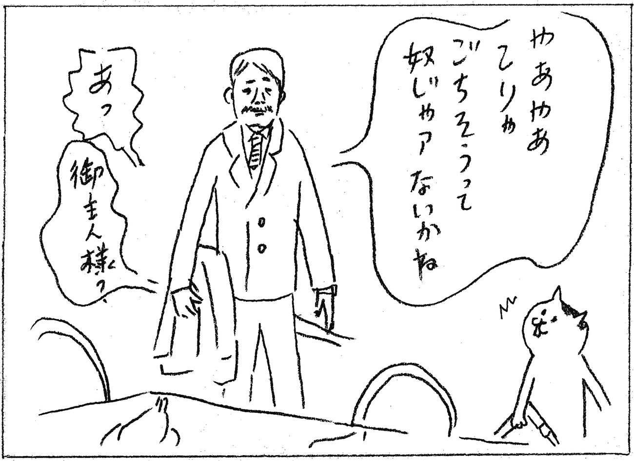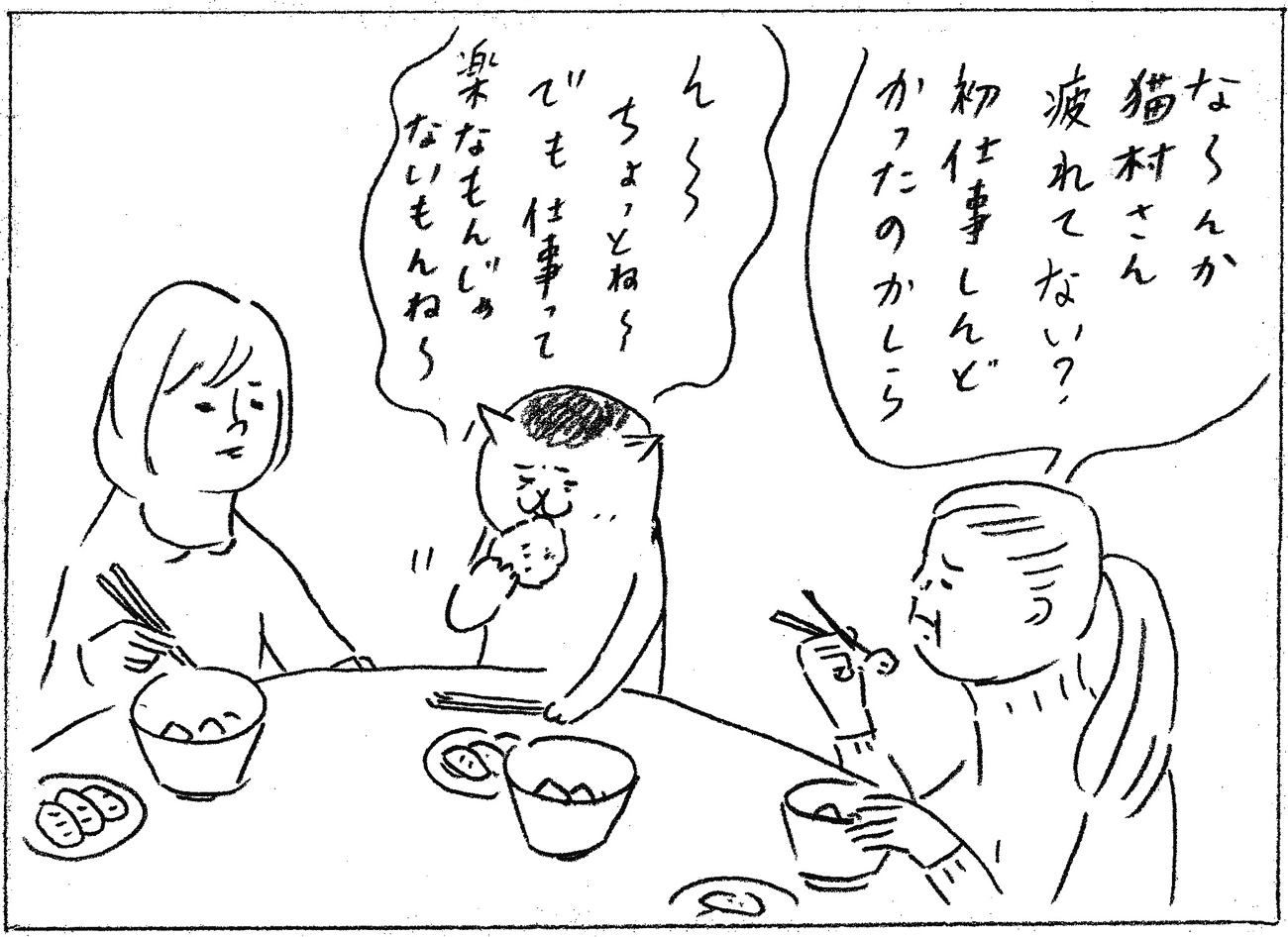 犬神たかし。大学4年生。就職活動にいそしみ、見事九十九商事の内定を取り付ける。権利と将来展望への野望が強く、やや周りの人を見下しがち。家族に対しての感情は醒めがちであるが、猫村ねこへの気遣いを見せる優しい一面もある。