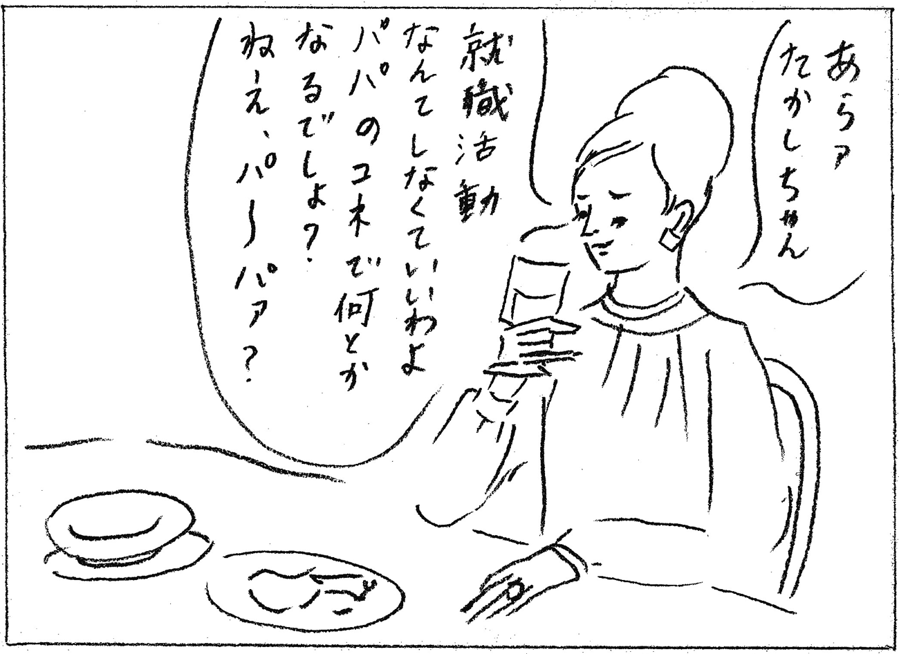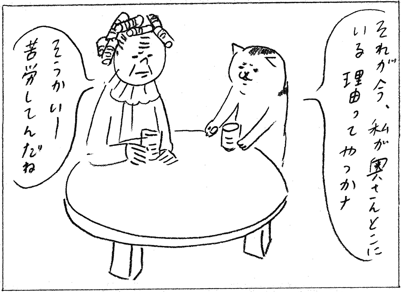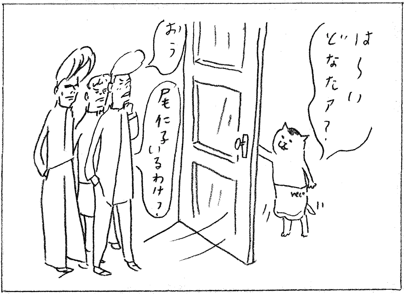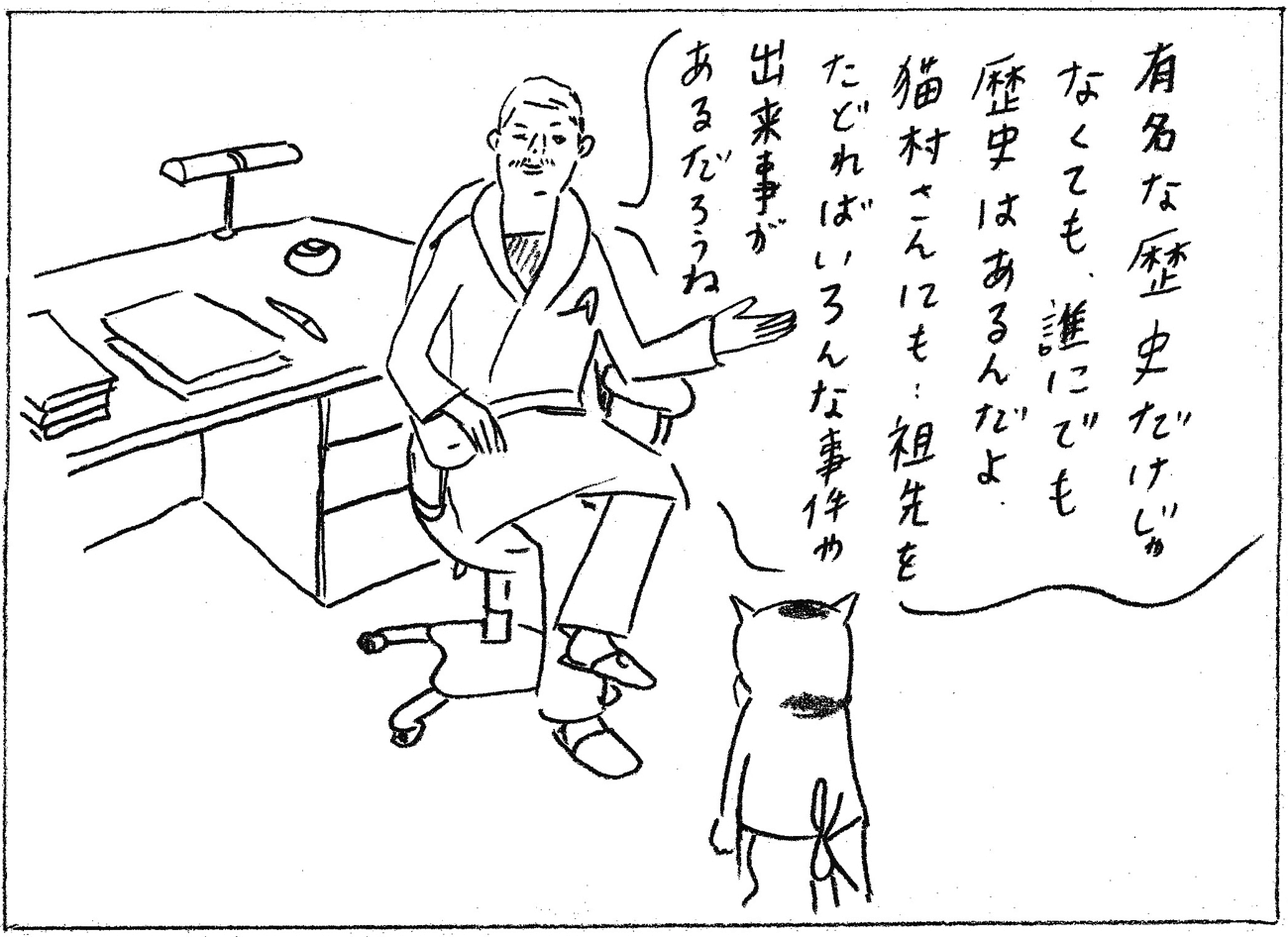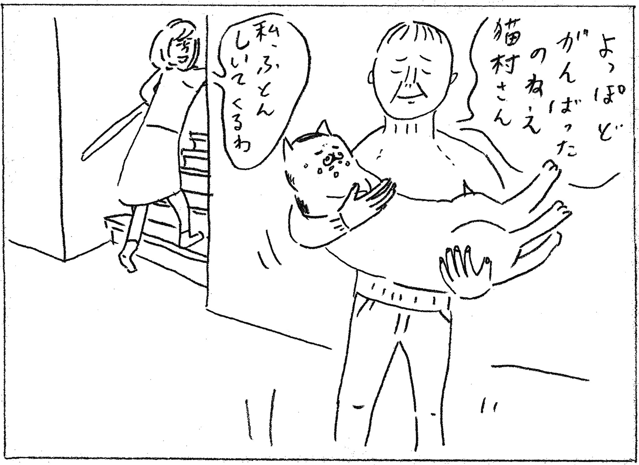 犬神たかし。大学4年生。就職活動にいそしみ、見事九十九商事の内定を取り付ける。権利と将来展望への野望が強く、やや周りの人を見下しがち。家族に対しての感情は醒めがちであるが、猫村ねこへの気遣いを見せる優しい一面もある。