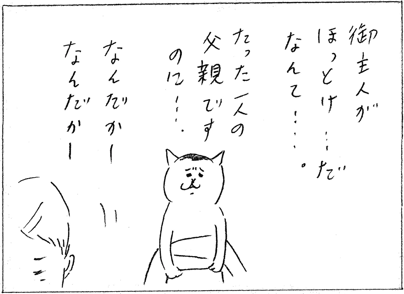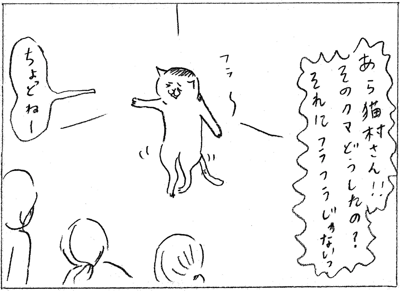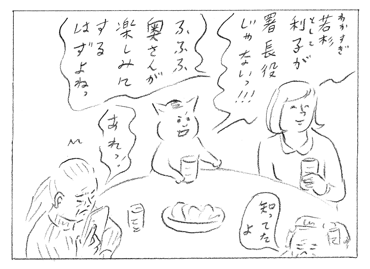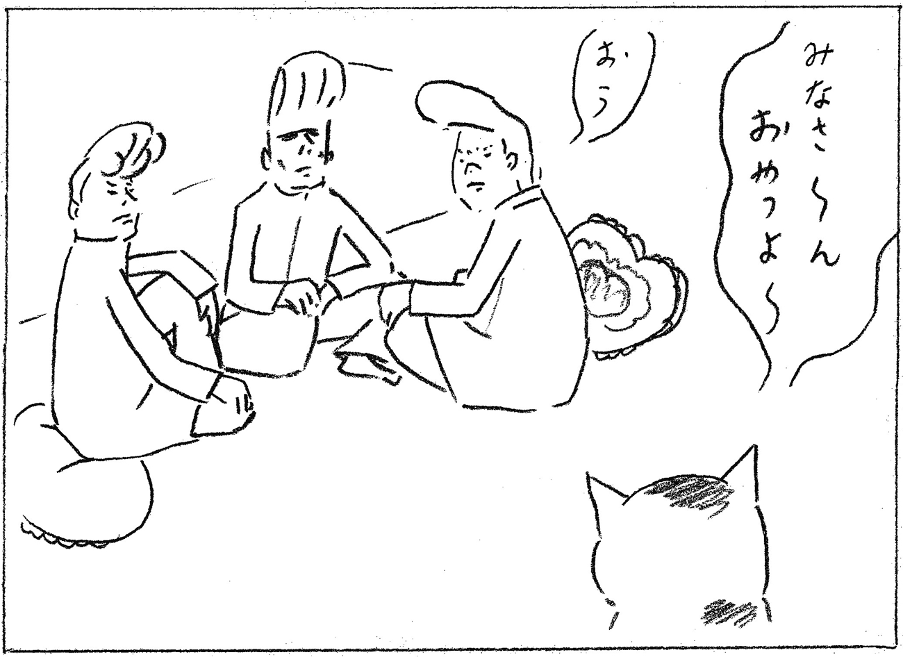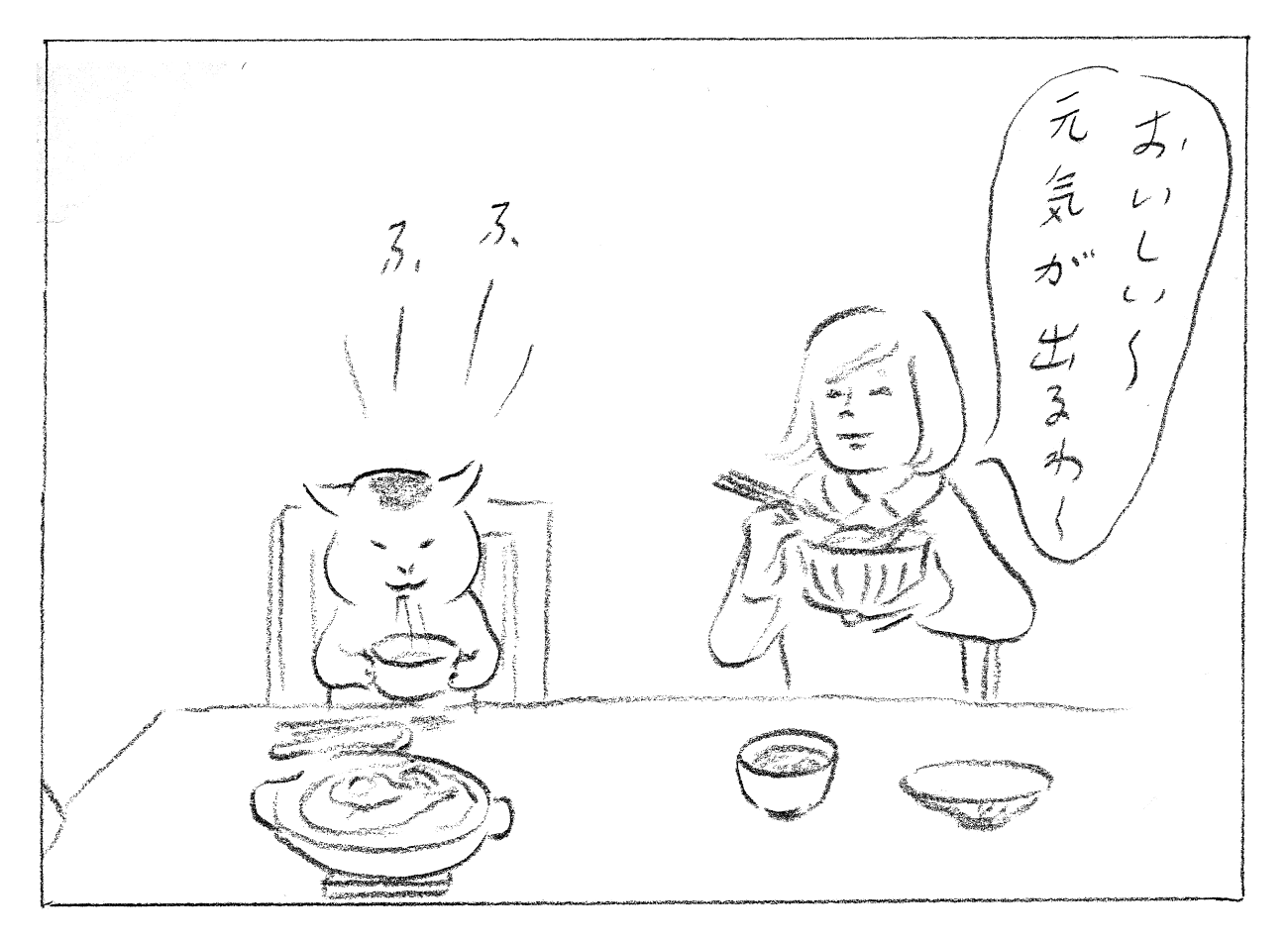 犬神たかし。大学4年生。就職活動にいそしみ、見事九十九商事の内定を取り付ける。権利と将来展望への野望が強く、やや周りの人を見下しがち。家族に対しての感情は醒めがちであるが、猫村ねこへの気遣いを見せる優しい一面もある。