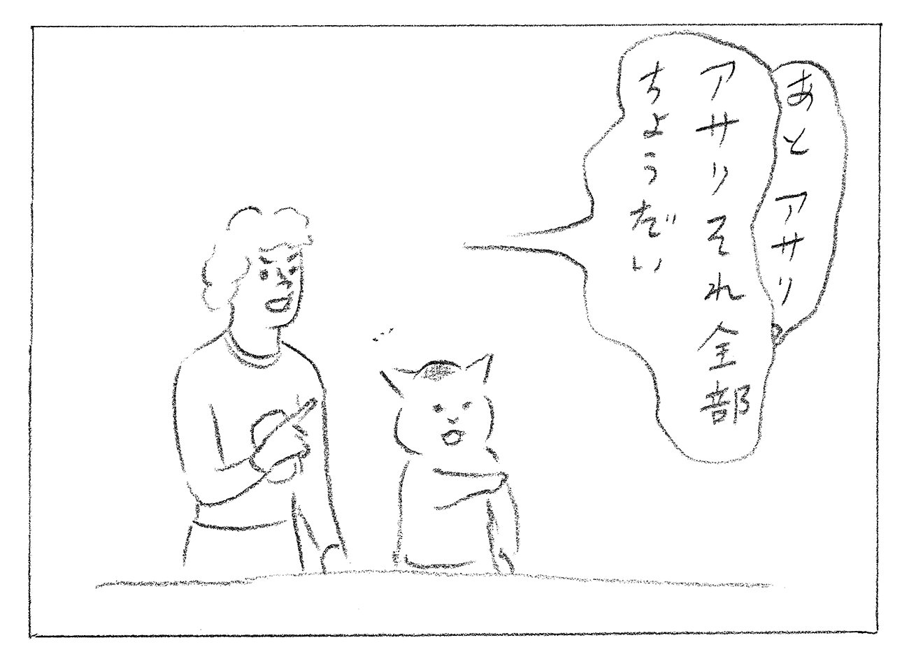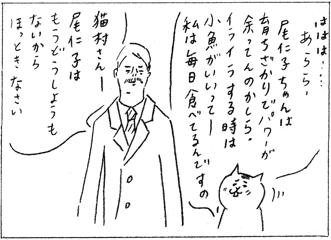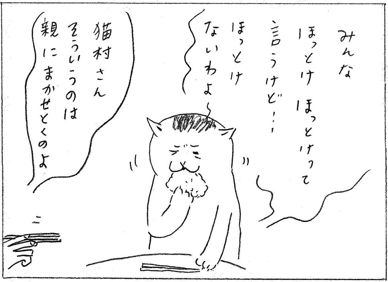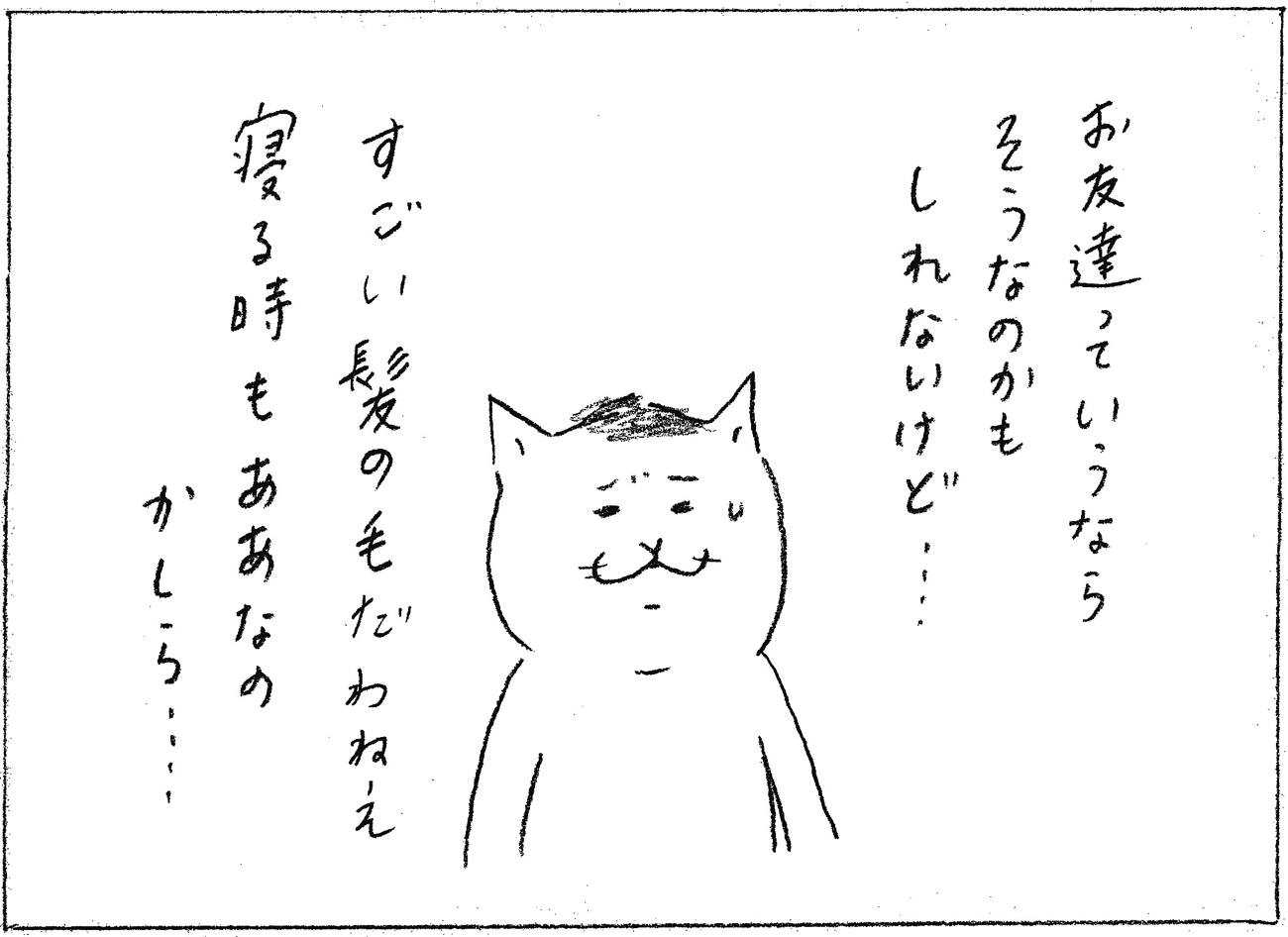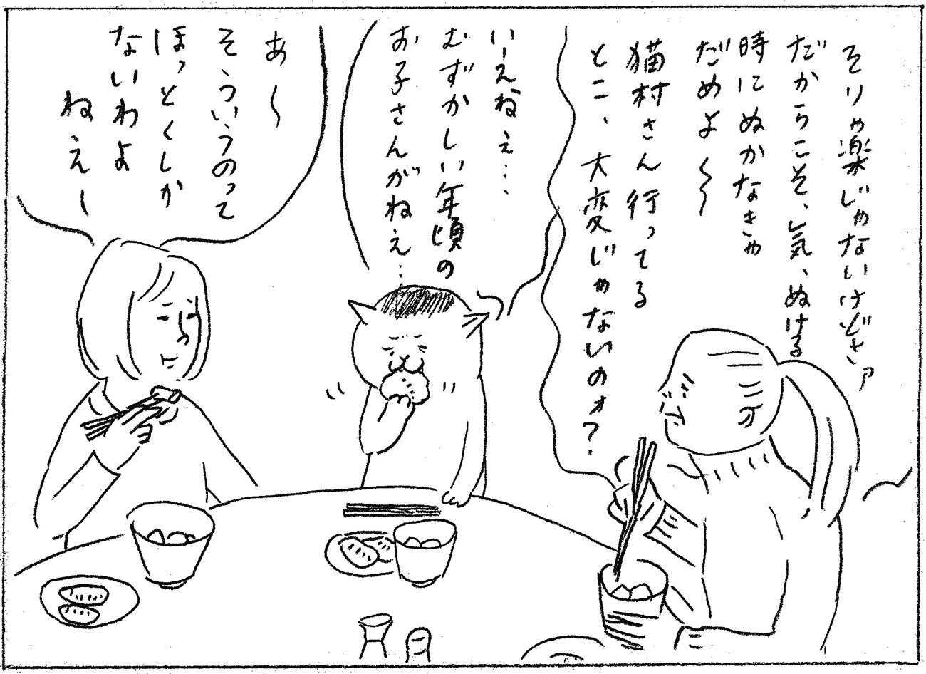 犬神たかし。大学4年生。就職活動にいそしみ、見事九十九商事の内定を取り付ける。権利と将来展望への野望が強く、やや周りの人を見下しがち。家族に対しての感情は醒めがちであるが、猫村ねこへの気遣いを見せる優しい一面もある。