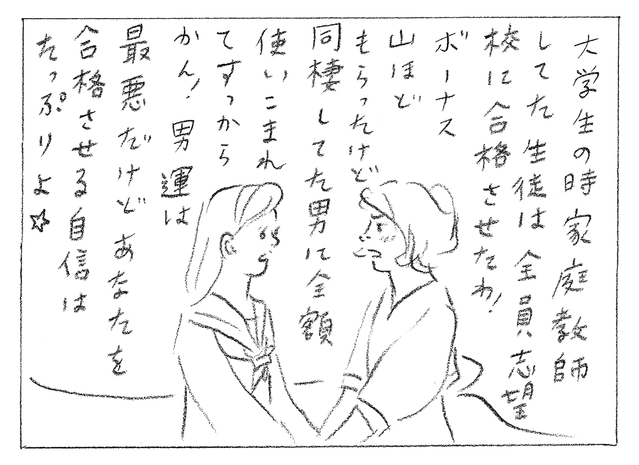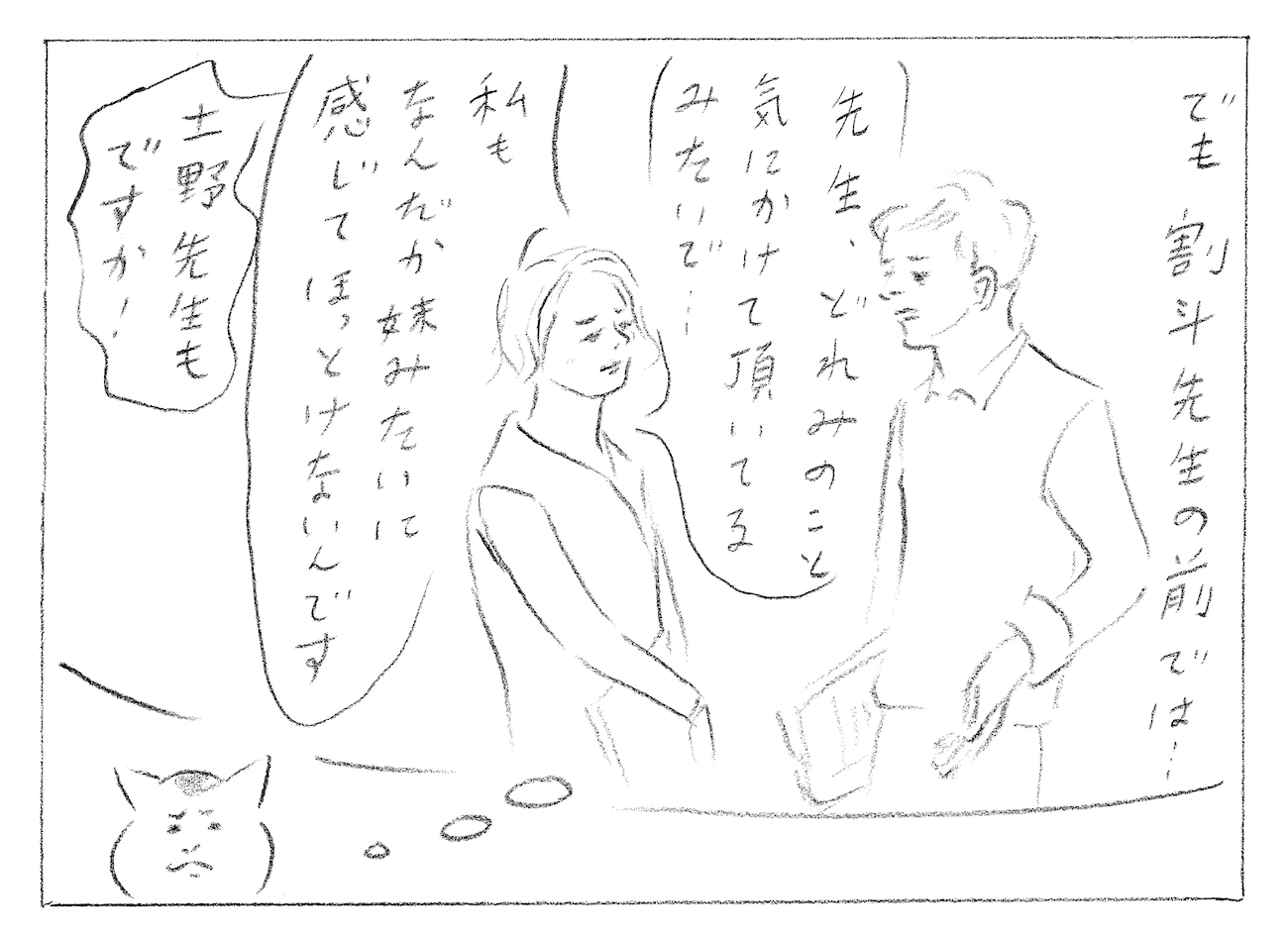 犬神金之助。大学教授。専門は歴史と風俗。かつて恋愛サークルの顧問を務めており、学生と不倫。今は解消している。次の研究テーマは「妻」。ミドルエイジクライシス、いわゆる中年の危機に陥っている。