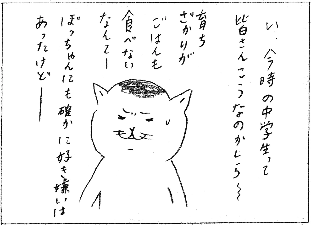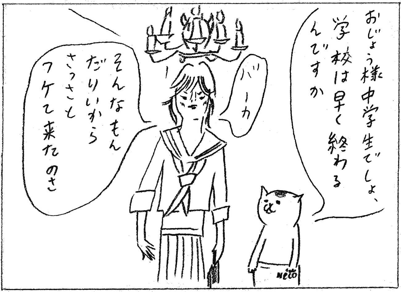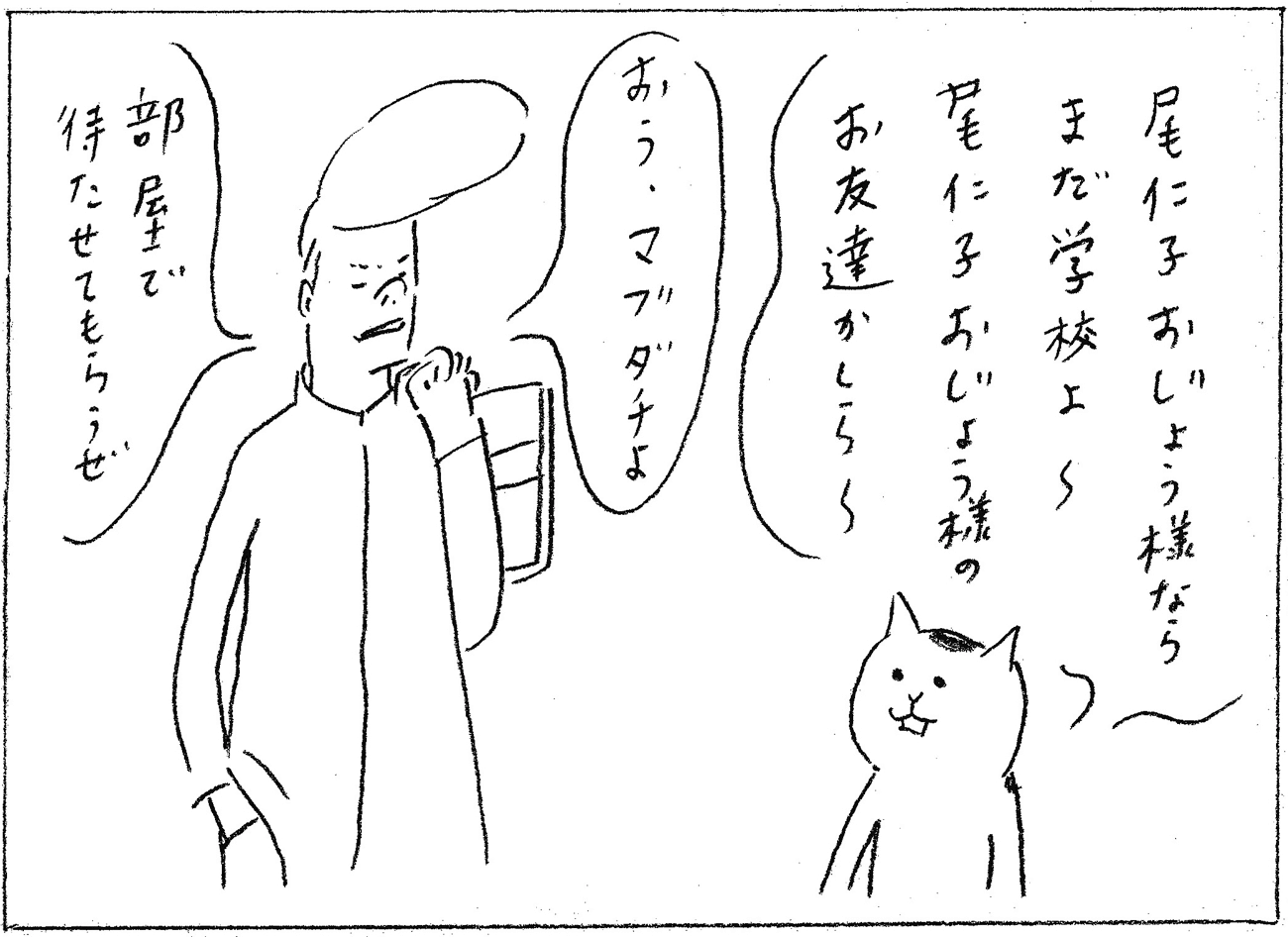 犬神尾仁子。中学2年生。反抗期のまっただ中で、かつて不良グループ「五月雨ヶ丘連合会」のリーダーであった。親への反抗から家族と揃って食事をとることはない。こっそり拾った犬「ステテコ」が彼女の愛犬。