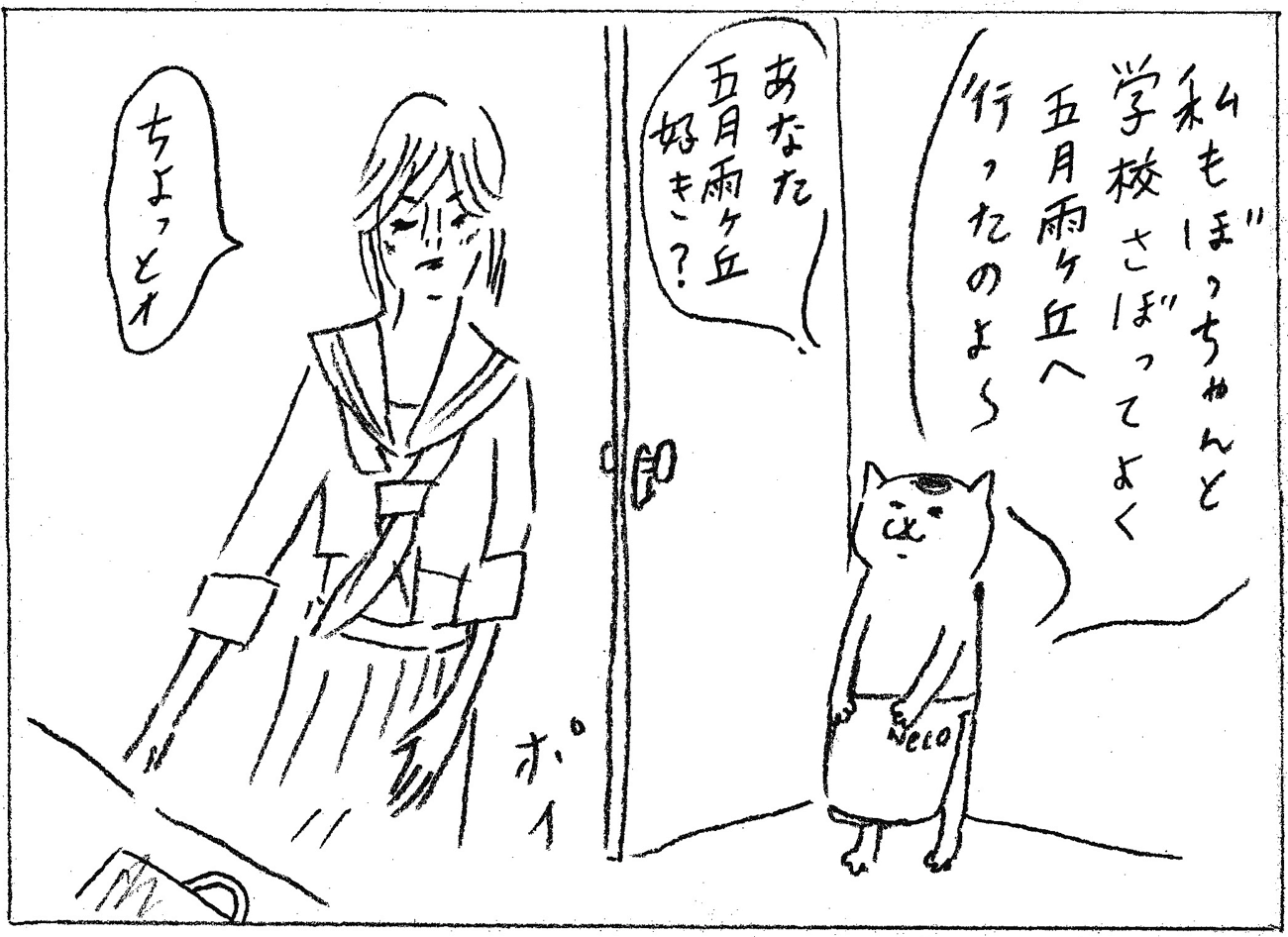 子猫だった猫村ねこを下校途中に保護。世話をし、文字を教えたり歌を教えたり、いつでも一緒だった。父親の不倫が原因で両親が離婚。母親について外国へ行き、猫村ねこと離ればなれに。現在の所在は不明。